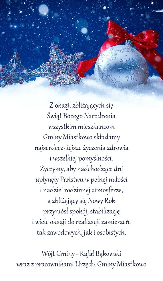 Z okazji Świąt Bożego Narodzenia składam Państwu najserdeczniejsze życzenia zdrowia, radości i spokoju.