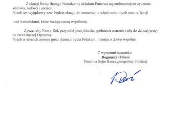 Życzenia od Pani Poseł Bogumiły Olbryś