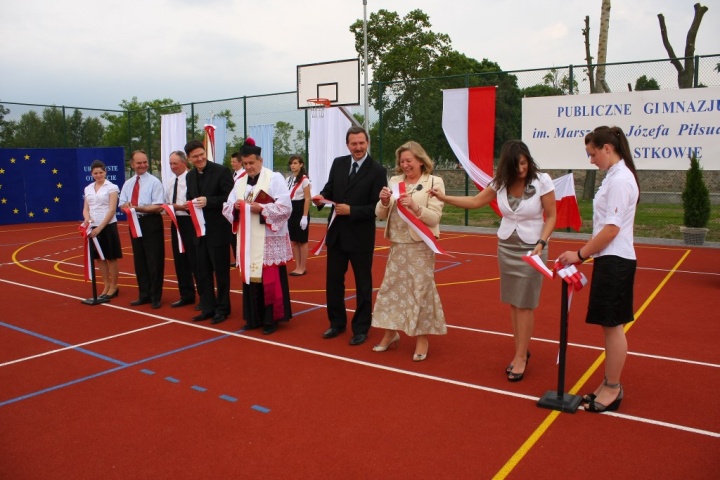 Wójt Gminy Lidia Małgorzata Grzejka przekazała do użytku społeczności gminnej piękne wielofunkcyjne boisko sportowe przy Publicznym Gimnazjum im. Marszałka Józefa Piłsudskiego w Miastkowie.