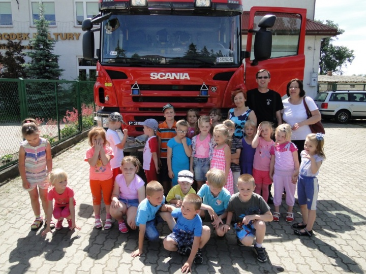 Następnie przedszkolaki udały się z wizytą do OSP w Miastkowie. Strażak opowiadał o swojej codziennej pracy, o tym, że jest ciężka i bardzo niebezpieczna, ale bardzo potrzebna i dająca mnóstwo satysfakcji.