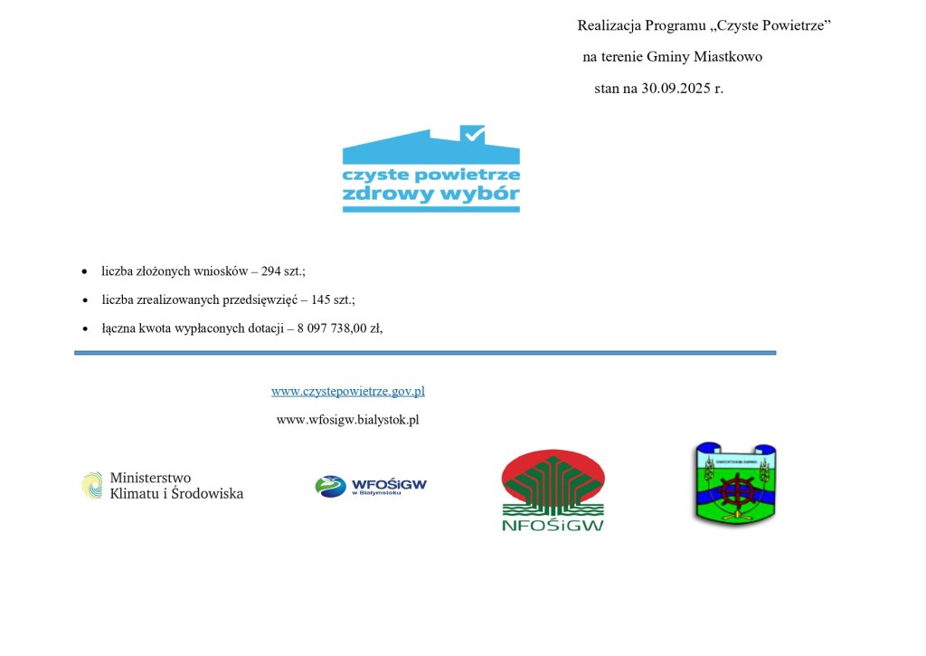 Realizacja programu "Czyste Powietrze" na terenie Gminy Miastkowo