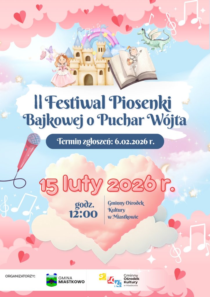 Zapraszamy do wzięcia udziału w II Karnawałowym Festiwalu Piosenki Bajkowej o Puchar Wójta Gminy Miastkowo