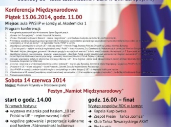 Związku z przypadającą w roku bieżącym 10. rocznicą członkostwa Polski w Unii Europejskiej, Powiat Łomżyński oraz Państwowa Wyższa Szkoła Informatyki i Przedsiębiorczości w Łomży planują w sposób szczególny uczcić to wydarzenie. Udało nam się pozyskać środki budżetowe Ministerstwa Spraw Zagranicznyc...