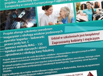 Z.H.P.U. DYNAMIS informuje, iż prowadzone są kursy zawodowe w ramach projektu „Konkretny fach – II edycja” współfinansowanego przez Unię Europejską w ramach Europejskiego Funduszu Społecznego.