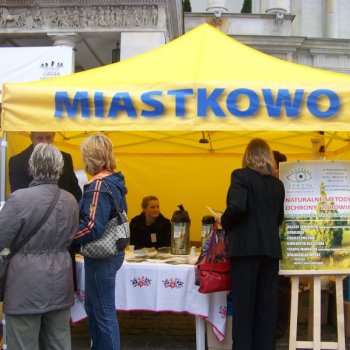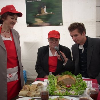 Tam w górze błękit nieba, Podlaską pieśnią w dole scena lśni. Stoiska ukwiecone, kobiety wystrojone z uśmiechem prezentują wyroby i dorobek swojego regionu"